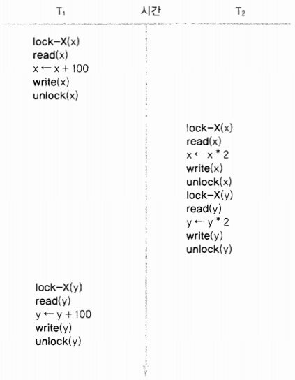 따라서 한 트랜잭션에서 모든 lock 연산(lock-X, lock-S)들이