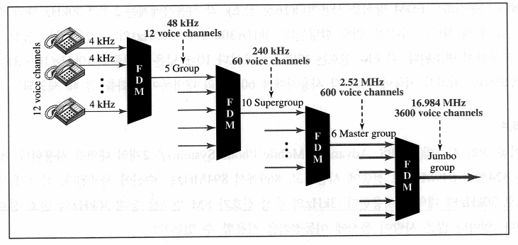 위의 아날로그 계층구조에서는 12개의 음성채널이