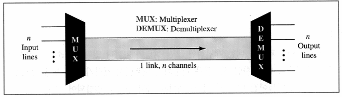다중화된 시스템에서는 n 개의 장치가 단일 링크의 대역폭을 공유한다.