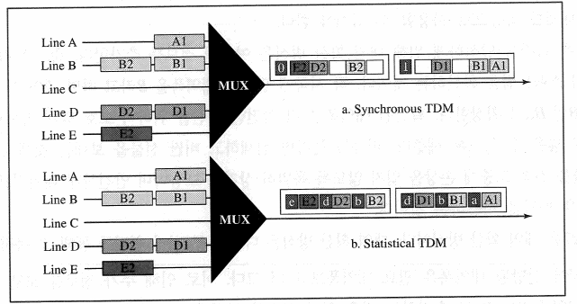 TDM은 동기 방식과 통계 방식으로 나눌 수 있다.