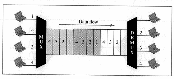 또한 서로 다른 발신지로부터의 디지털 데이터가 하나의 시간 공유 링크로 합쳐진다.
