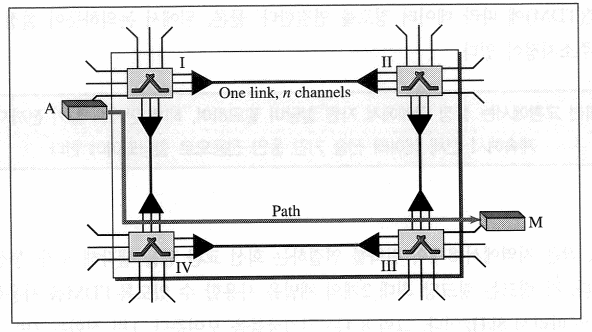 각 링크는 FDM 또는 TDM을 사용하여 n개의 채널로 나뉘어 있다.