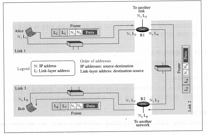 프레임은 논리적으로 발신지 호스트에서 목적지 호스트까지 전송된다.