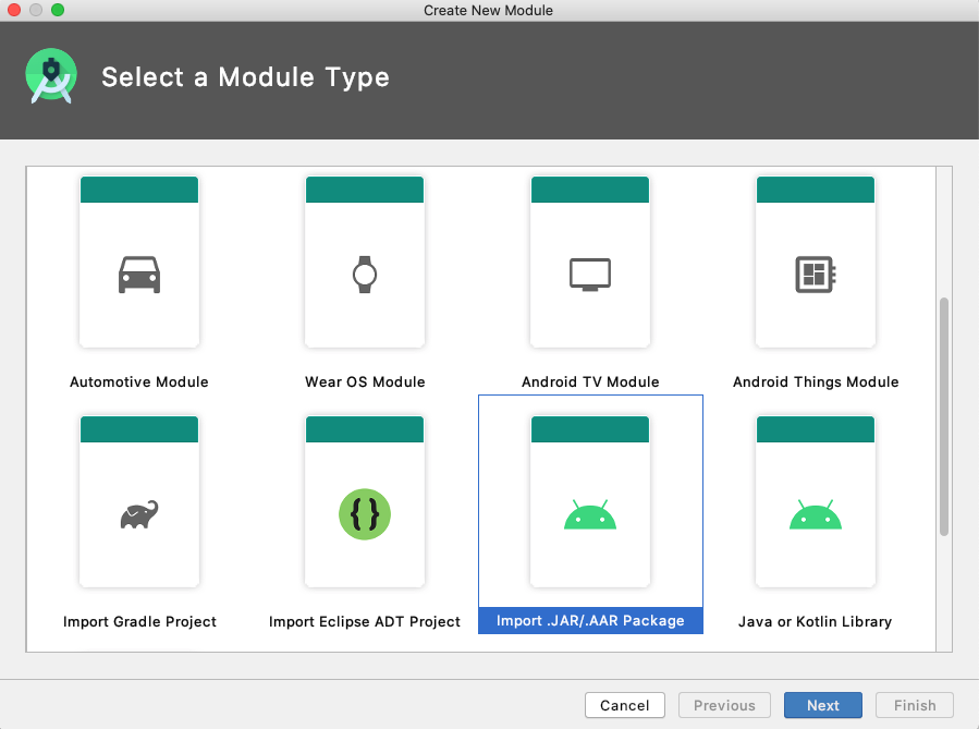 2. Import .JAR/.AAR Package 클릭