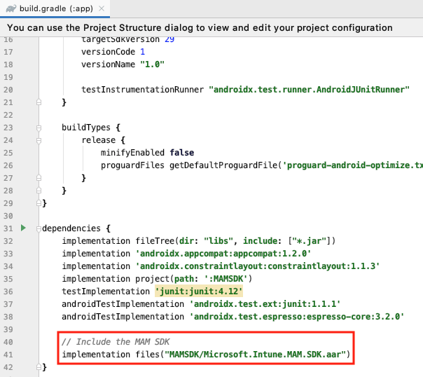 3. Microsoft에서 제공하는 aar 파일 적용 (MAMSDK)