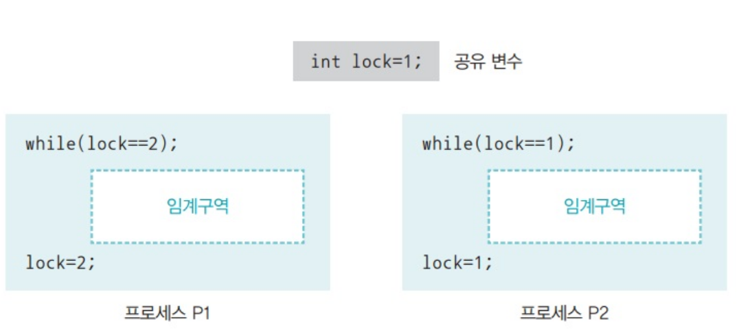 또한, 이 방법은 프로세스가 늘어나면 lock의 개수도 늘어나 비효율적이다.