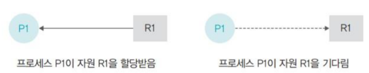 Pi -> Rj를 요청 간선이라 부르고, Rj -> Pi를 할당 간선이라 한다.