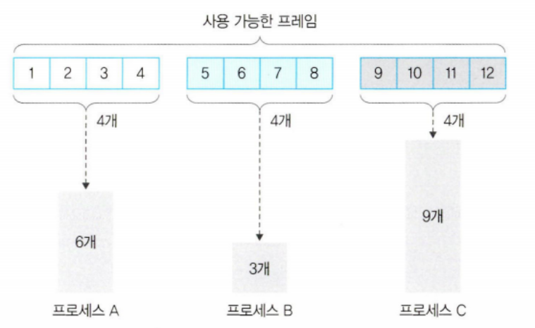 크기가 작은 프로세스의 경우 메모리가 낭비된다.