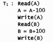 그 중 하나는 아래와 같이 A의 값은 로그 레코드 <T1, A, 900>이 일단 기록된 뒤어야 출력될 수 있다.