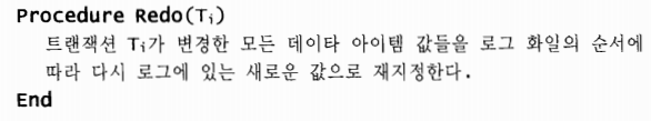 그 회복 방법은 다음 Redo 프로시저를 이용한다.
